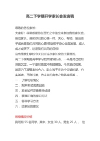 【高二】【下开学】【奋进关键期 跨越分水岭】家长会-发言稿