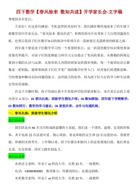 四下数学【春风徐来 数知共进】开学家长会-文字稿