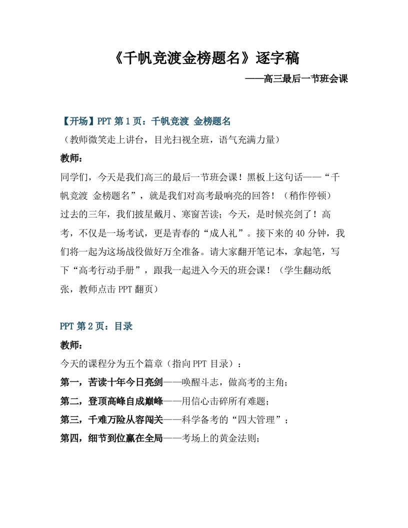 首页教研资料《千帆竞渡 金榜题名》讲稿