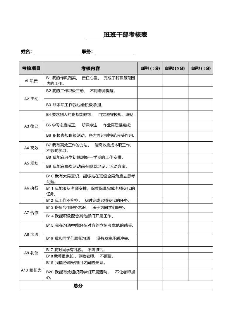 班干部考核表