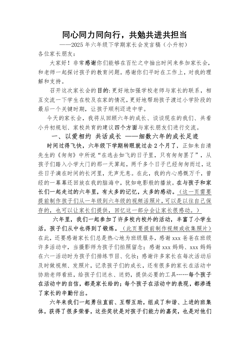 首页教师资料2025年春季六下家长会(小升初)