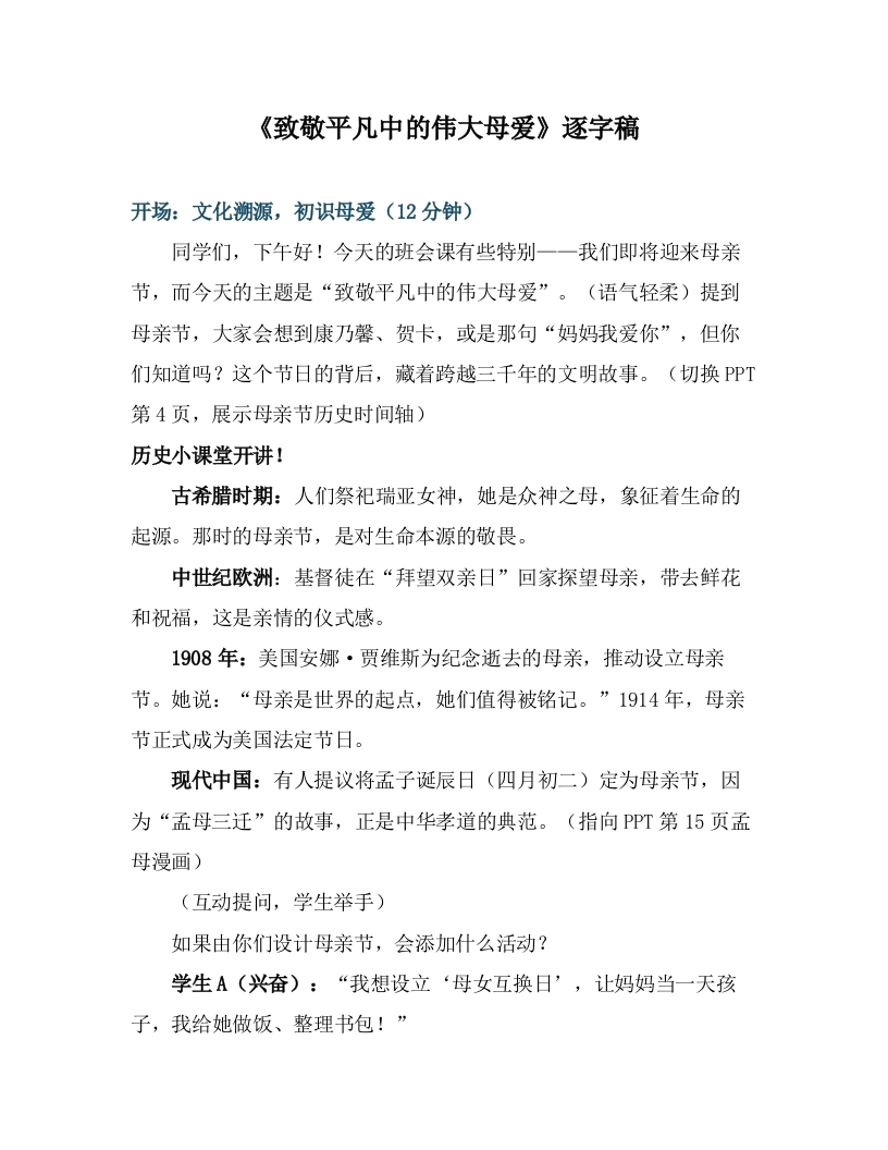 首页教师资料《致敬平凡中的伟大母爱》讲稿
