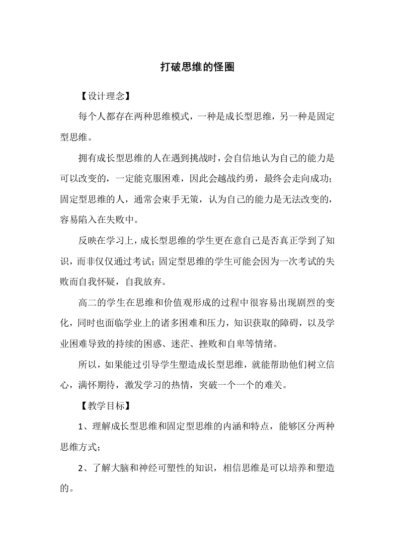 3.《打破思维的怪圈》教学设计1