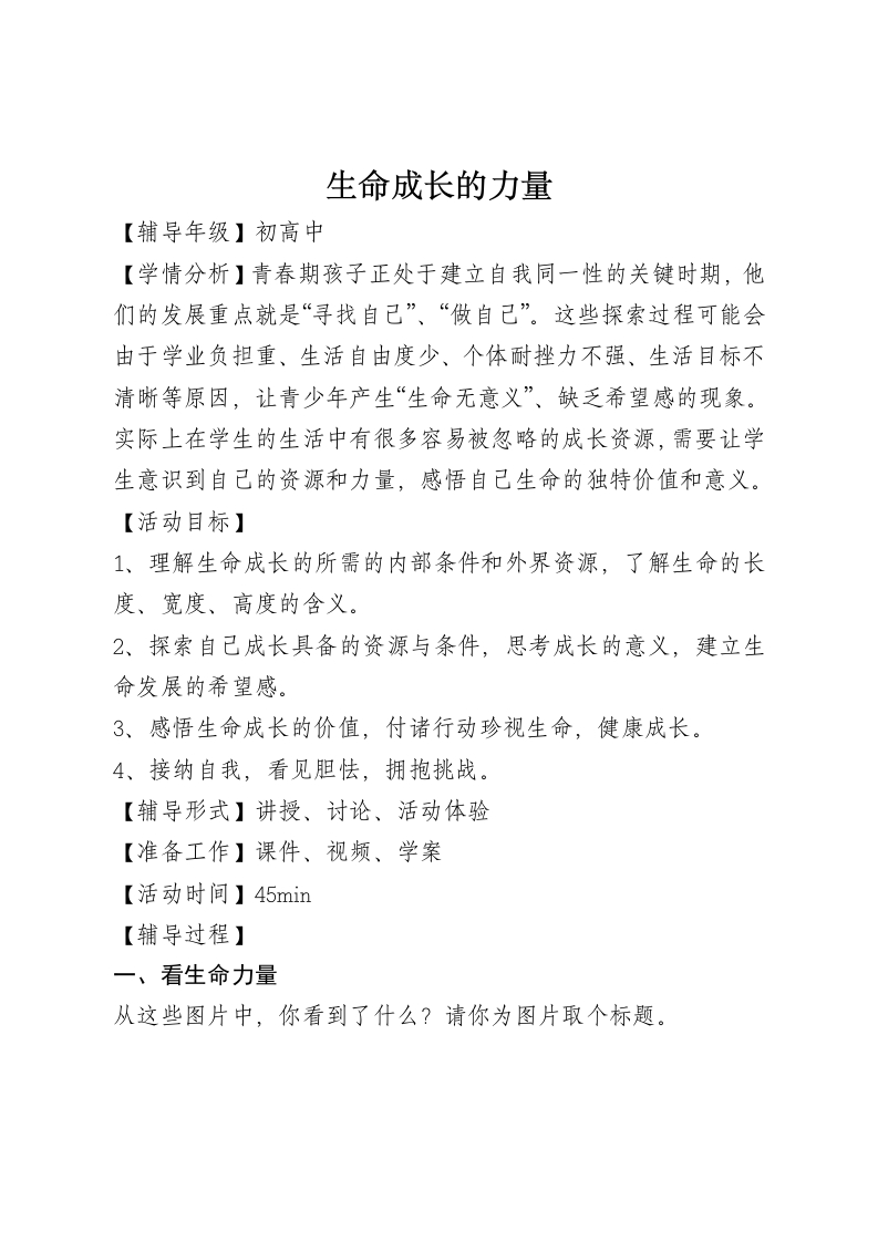 首页德育资料《生命成长的力量》教案