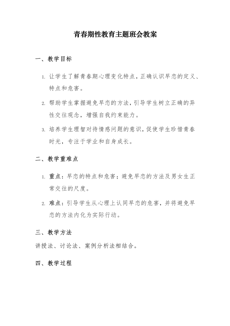 青春期性教育主题班会教案